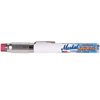 Термокарандаш Thermomelt Heat Stik Certified – это разновидность термокарандаша Thermomelt Heat Stik, сертифицированная в соответствии с требованиями ядерной и оборонной промышленности с точки зрения коррозионной стойкости в производстве нержавеющей стали и других жаропрочных сплавов. Предназначен для моментального определения температуры на поверхности материала в диапазоне от +38 0С до 343 0С. При этом достигается высокая точность контроля – ± 1% в пределах температурного диапазона. Термокарандаш представляет собой стержень, состоящий из лакополимерного композита. Стержень вмонтирован в металлический корпус, снабженный карманным держателем и фиксатором стержня. Материал стержня плавится при определенной температуре, называемой номиналом карандаша. Номинал указан на корпусе карандаша.